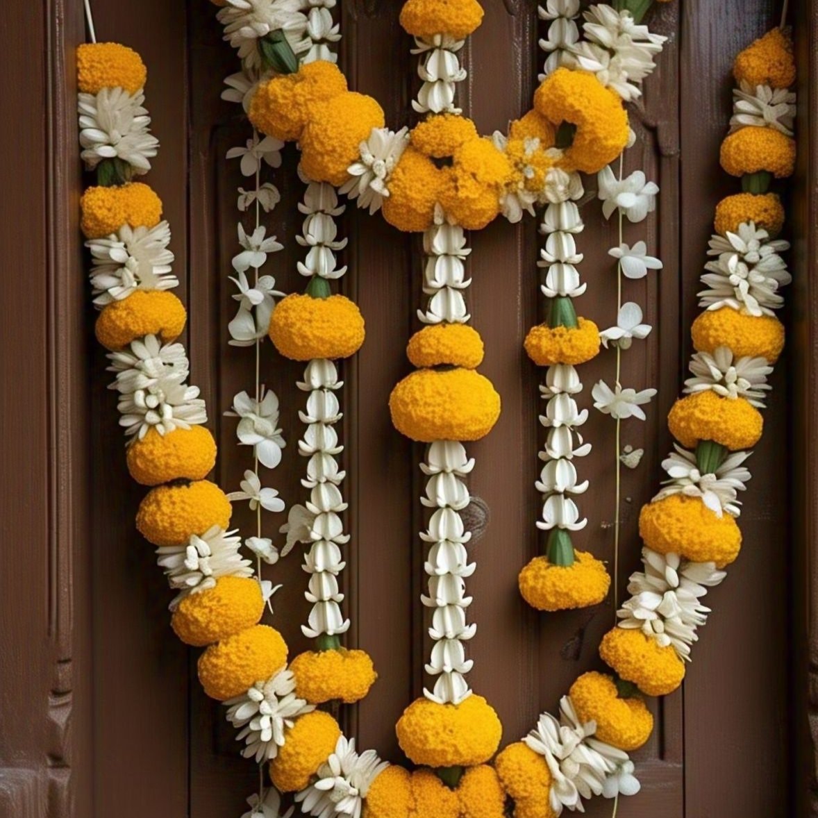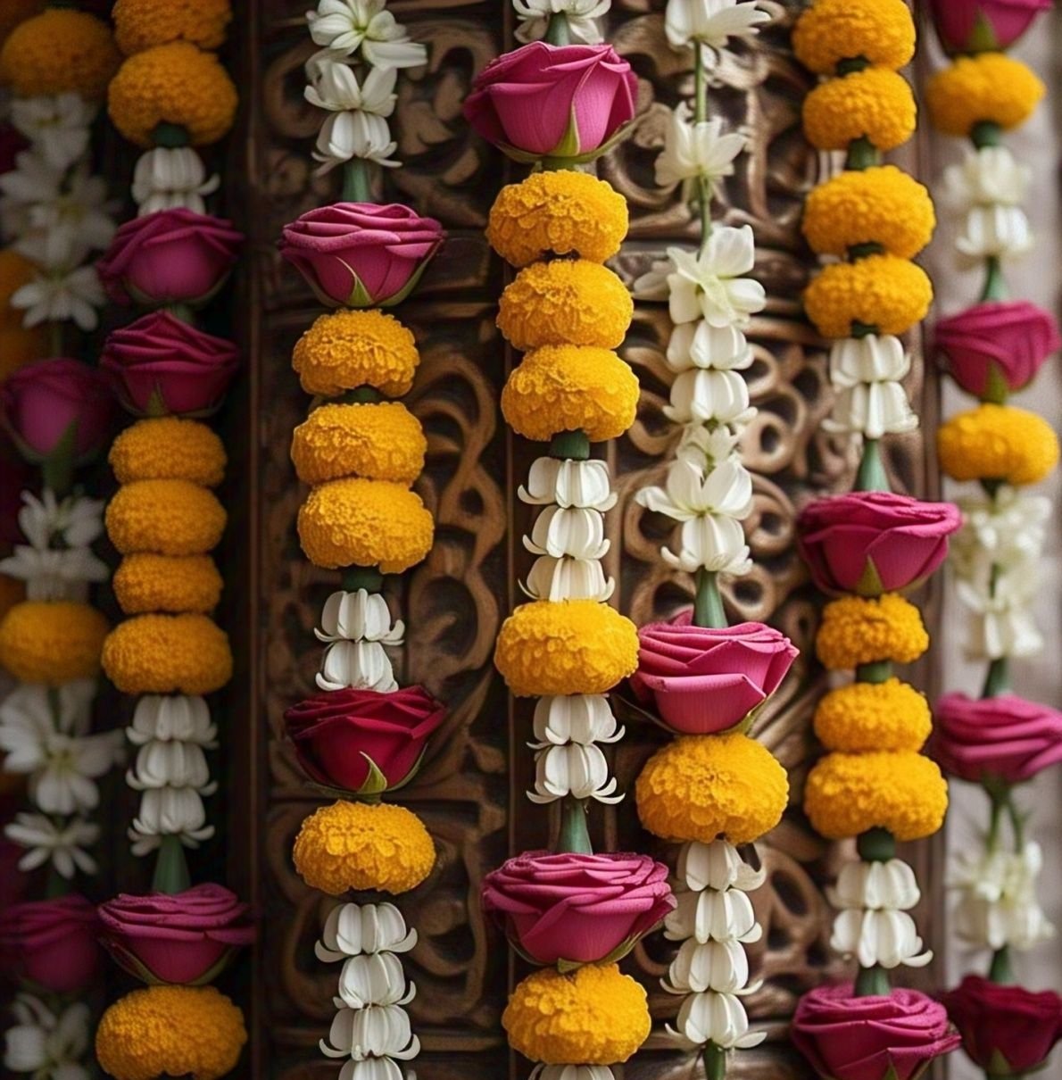 Includes Marigold,Desi Gulab & White Rose: These flowers are essential in every mala.